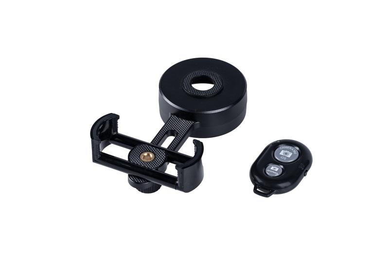 Fotenie prírody mobilom Adaptér na uchytenie mobilného telefónu slúži na pohodlné snímanie a záznam obrazu cez okulár spektívu alebo ďalekohľadu. Telefón sa bezpečne a komfortne upne do adaptéra a pozorovateľ má tak voľné ruky...