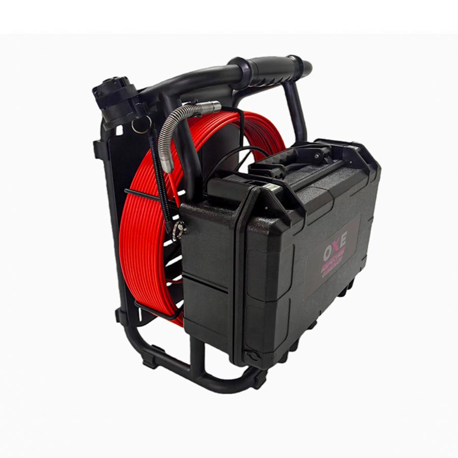 OXE InspCam Compact 40 WNG Micro head 14 mm je nová, vylepšená inšpekčná kamera s mnohými novými praktickými funkciami, ktorá vychádza z predchádzajúceho modelu OXE InspCam Compact 40 . Kompaktná a robustná inšpekčná kamera je vhodná na inšpekciu potrubí, kanalizácie, plynovodov, komínových systémov a ďalších oblastí. Kamera je vybavená navíjacím bubnom kamery 40 m dlhým, 4,8 mm hrubým káblom zo sklených vlákien. Hlava kamery má priemer 14 mm. Je vybavená dvoma typmi vysúvačov. Hrúbka 4,8 mm je ideálna hrúbka tlačného kábla na dobrý prienik na dlhé vzdialenosti s hlavou kamery s priemerom 14 mm a zároveň zaručuje dostatočnú flexibilitu pre pohyb v 90stupňových ohyboch. Vynikajúcou funkciou tejto kamery je digitálny odpočet dĺžky odvíjaného kábla. Aktuálny stav odvíjania sa zobrazuje online na displeji prístroja.