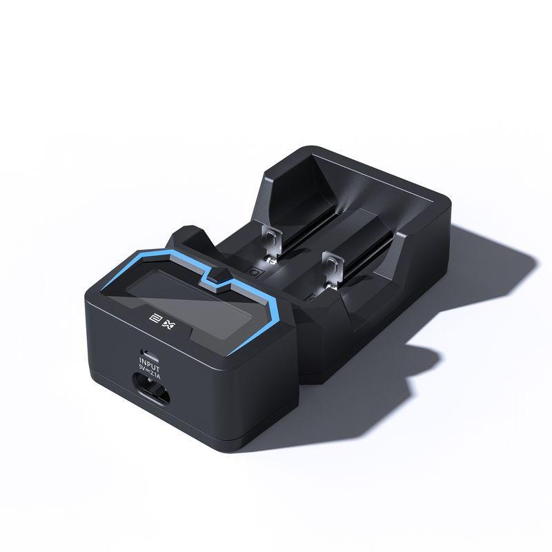 Schopný nabíjať rôzne typy a veľkosti článkov — od formátu 14500 do 26650.
